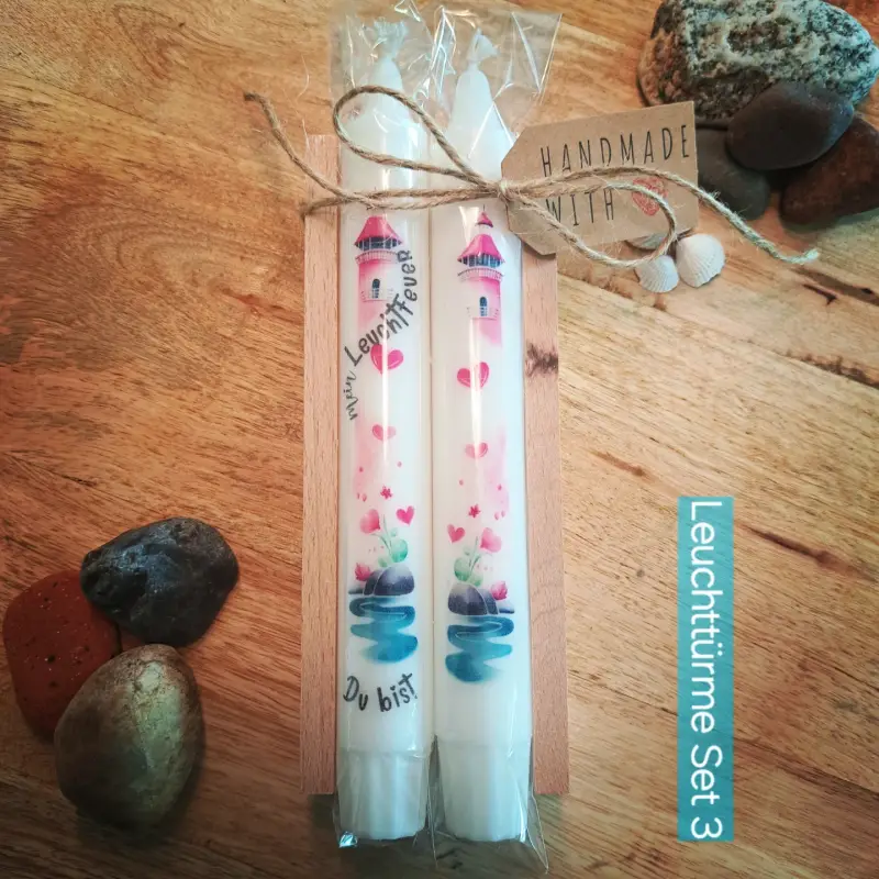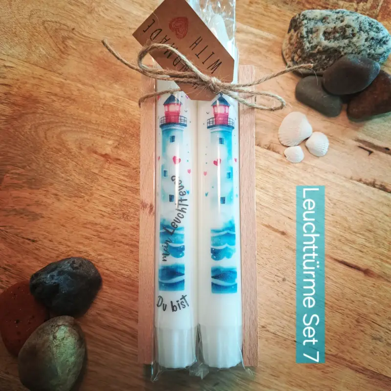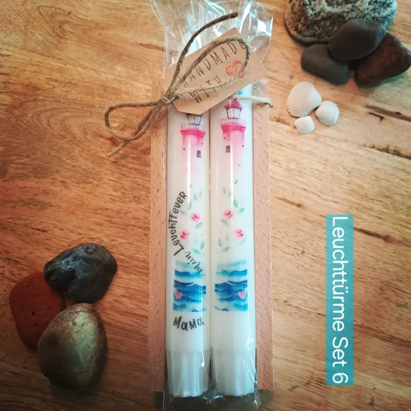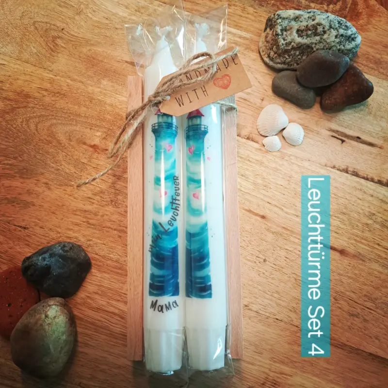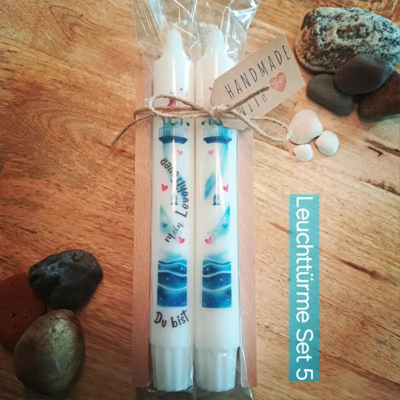 Verleihe deinem Zuhause eine warme und einladende Atmosphäre mit dem Leuchtfeuer Kerzen Set von Handmade by Jenny Großmann. Jedes Set wird mit Liebe gefertigt und bietet eine einzigartige Möglichkeit, besondere Momente zu zelebrieren oder einfach nur die Seele baumeln zu lassen.