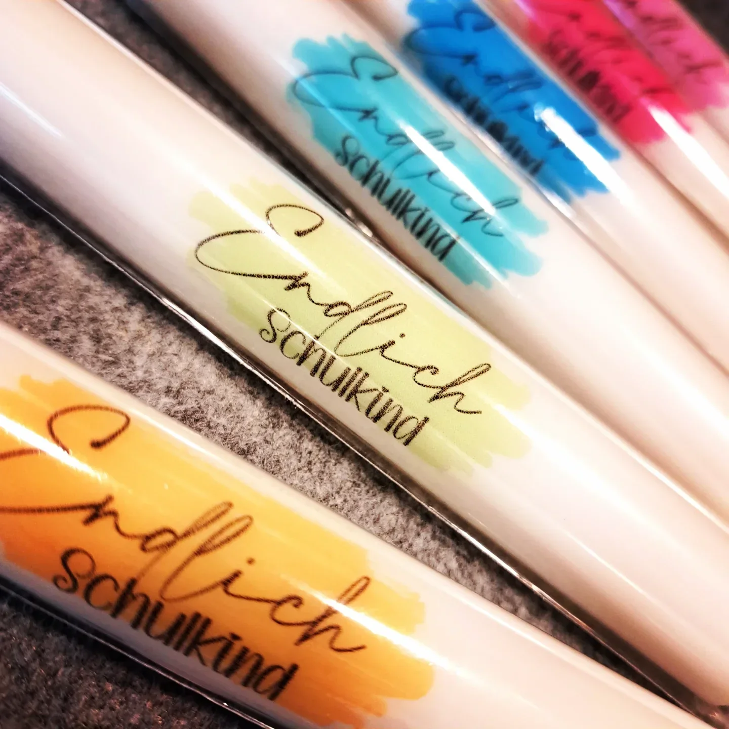 Schulkind Stabkerzen weiß 14cm 2Stk Alles Gute zur Einschulung orange